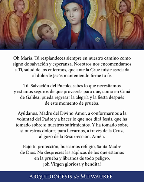 Queridos hermanos y hermanas: Contemplar juntos el rostro de Cristo con el corazón de María, nuestra Madre, nos unirá todavía más como familia espiritual y nos ayudará a superar esta prueba. Rezaré por ustedes, especialmente por los que más sufren, y ustedes, por favor, recen por mí. Les agradezco y los bendigo de corazón.